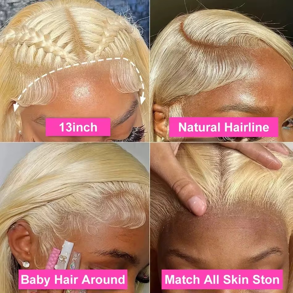> Wholesale 13x4 Brazilian Straight Lace Frontal Wig 613 Blonde Human Hair Full Lace Front Wig