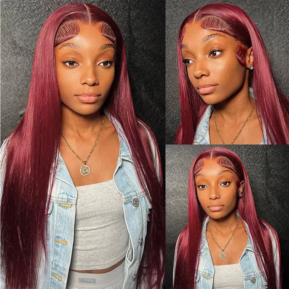 > Wholesale 13AA Human Hair Full Frontal lace 13x4 Wig 99J Burgundy Lace Frontal Human Hair Wig