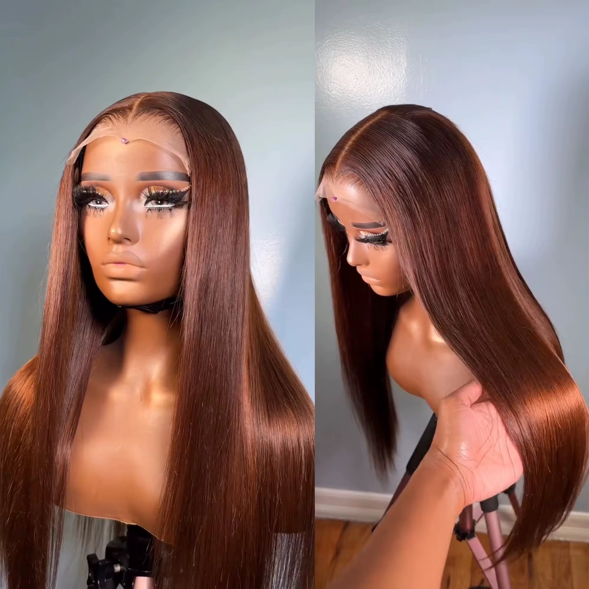 Wholesale 13AAA Chocolate Brown Lace Front Wig Brazilian Hair Straight 13x4 Lace Front Color #4 Wigs
